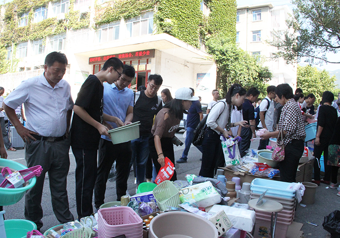 7、家长们细心的为孩子挑选宿舍生活用品。
