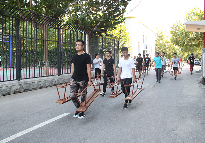 1、每次拿两个凳子,人人参与,提高工作效率。
