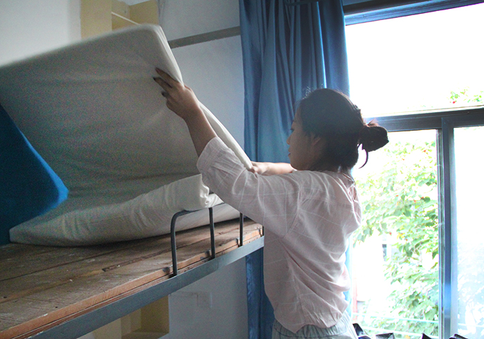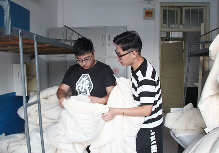 9月6日下午,在宿舍用品搬运、分发工作结束后,各新生班级助理辅导员来到新生宿舍为新生整理宿舍卧具。助理辅导员认真清点卧具数量,细心铺平被褥,尽力为新生们提供一个温馨整洁的宿舍环境,用周到的服务迎接新生到来。(文:赵甜星 图:韩经纬)