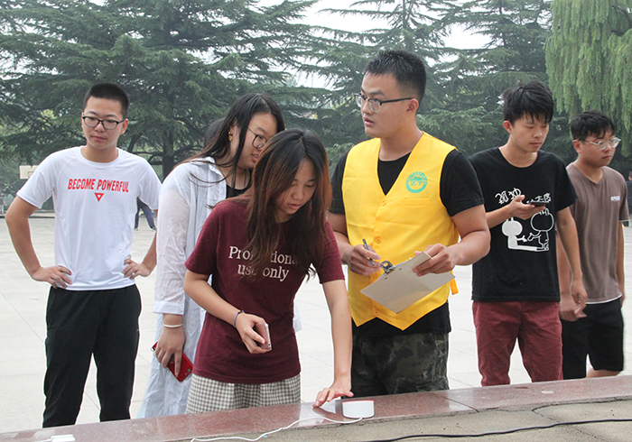 资源与土木工程系自律会在文化广场组织全系同学早签活动。资土系全体辅导员老师到场查看早签情况。