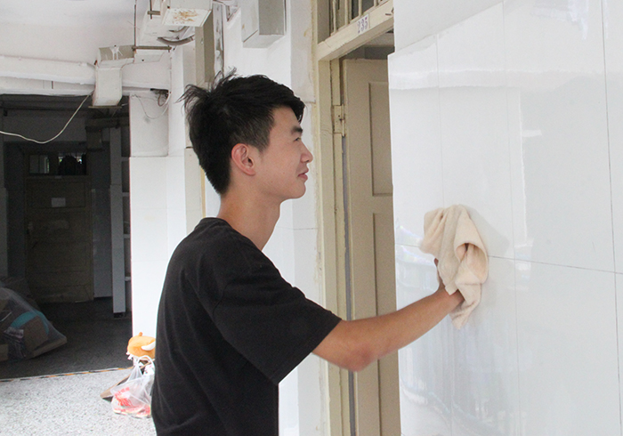 9月2日下午,资土系组织全体学生开展卫生大扫除活动。同学们在各舍长的带领下,对宿舍进行清扫:晾晒被褥、整理床铺、清洁地面、擦拭墙壁桌椅等。在打扫的同时,大家一起讨论着各自的暑期生活,整间宿舍在一片欢声笑语中被打扫得干干净净。(文:王焕妍 图:韩经纬)