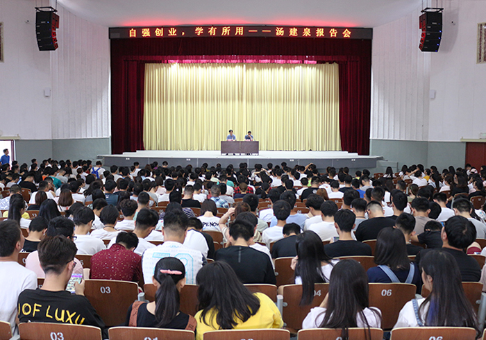 会上,汤建泉与大家分享了自己的创业经历与经验。他讲道,“从身体健全到视力残疾,我对个人能力产生怀疑,在家人朋友的鼓励和支持下,我重拾信心。从推销员到董事长,我也曾遭到冷嘲热讽,但我告诉自己一定能行”。他希望每个人都能追求梦想、坚持学习、学会坚韧、审时度势,自立自强,勇往直前。2018届全体毕业生和部分在校生代表参加了报告会。(文:张浩 图:谢良腾 刘永康)