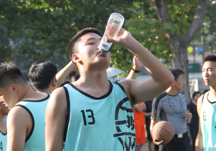 2、中场休息,喝点水补充水分。