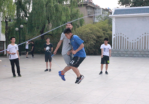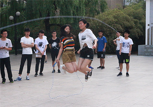本次比赛两人一组,先后要完成双人跳绳等四个项目,用时短者获胜。现场双人车轮花样跳、背靠背挤气球、15人长绳同步跳、绑腿跑逐个进行,每一项比赛都十分精彩,每一组参赛队伍都全力以赴,现场氛围如火如荼。据悉,本次比赛将选出六名用时最短的同学进行颁奖。(文:张浩 图:王嘉伟)
