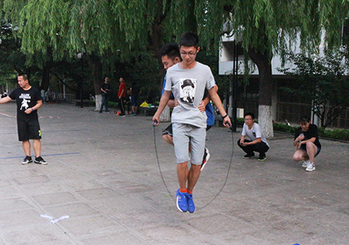 5月17日下午,资土系“舞动绳弦”跳绳协会在文化广场举办第一届双人娱乐跳绳交流赛。