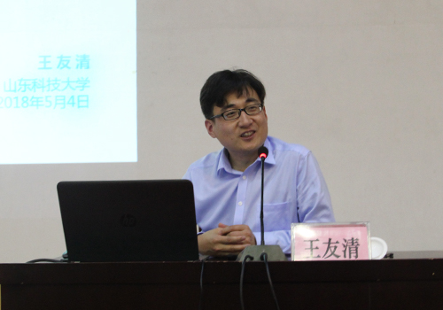 日前,山东科技大学自动化学院教授王友清为资土学子作“复杂过程的状态检测和故障诊断”学术报告,资土系副主任王清标出席并主持报告会。