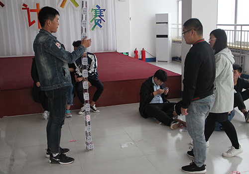 2、对模型进行点评,指导选手进行加载。 3、做最后加固,保证承重万无一失。 4、“三二一,放!”同时加载砝码,让模型均匀受力。 5、已经搭建很高了,一定要扶好、稳住啊! 6、裁剪组装,分工明确,默契配合。