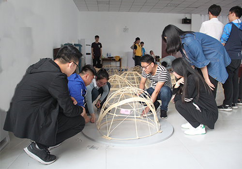 由校区、学院主办,资土系承办的第四届“路达杯”结构设计大赛火热进行中,专业组和非专业组模型搭建完毕,在大学生活动中心展示。(文/图:滕祥龙)