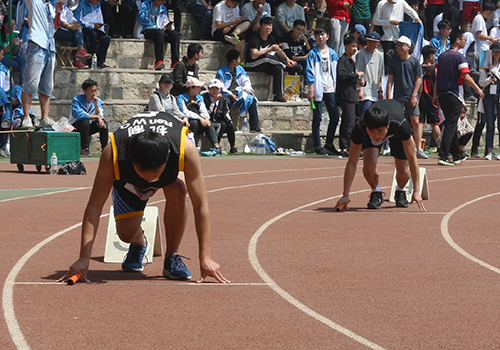 1、凝视100米之外,暗下决心:一会儿枪响定要拼尽全力奔出,跑好第一棒。
