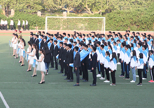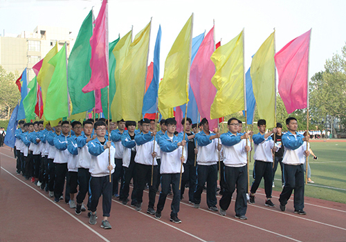 2、彩旗队手擎彩旗,迈着整齐的步伐经过主席台。