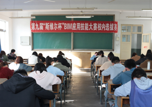 在寒假期间视频培训的基础上,此次比赛主要通过笔试的方法,对土木、造价、工程管理三个专业的50名同学进行选拔。赛前,尹发利对同学们提出建议,希望同学们认真对待、遵风守纪,以饱满的状态迎接考试。随后,参赛同学对建筑设计、结构设计、安装算量等110道题进行作答。经过较长时间的准备,参赛同学熟练掌握相关知识和考察的题型,在考试中表现得游刃有余。