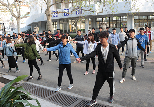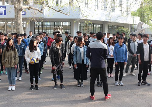 4月8日下午,资土系排球社在体育馆积极准备排球操的编排与训练。