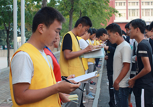 早上六时二十分,新成员热情饱满的来到指定地点做好准备。同学们陆续来到现场进行早签。干事们态度认真,专注为前来的同学签到,同学们也自觉的排好队伍,现场秩序井然。六点四十分左右,签到人数达到高峰,渐渐熟悉工作的他们也有条不紊的进行着自己的工作。早签结束后,早检部的干事们迅速收队,汇总结果,“新人”上岗第一天的早签顺利完成。(文:胡桂聪 王灵煜 图:王希若 李盛广 滕祥龙 )