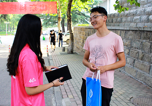 刘绪峰介绍,本次迎新相较于往年,我们今年采用迎新人员与新生“一对一”服务关系。在南门口设置咨询台,为新生提供指引工作,并且在新生入学前提前将卧具分发到每个人。