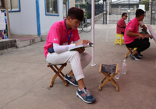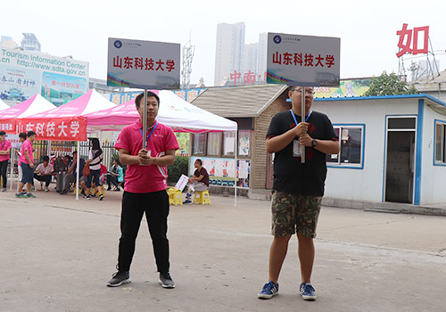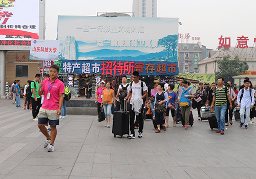 9月9日早上7点,资土系学生会志愿者在2号楼前集合完毕,乘坐校车奔往泰山火车站,开始了紧张忙碌的迎新工作。(文:刘晓凤 图:刘晓凤 彭衍嵩)