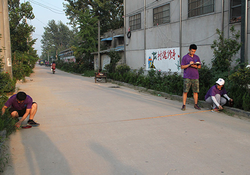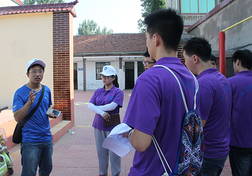 朱前村一隅,指导老师尹发利对工作任务进行指导和安排。