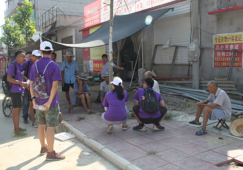 团队成员与当地商户沟通,调查朱前村宅基地区位和农业用地的情况。