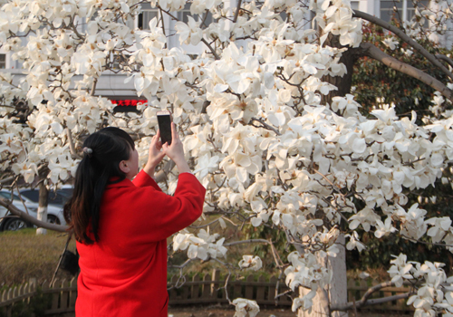 素装淡裹,晶莹皎洁的玉兰倾吐着浓郁的春天气息,我要拿起手机,将时间定格在这美好的一刻。春天,科大风景独好。
