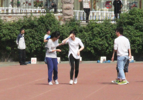 图(9):运动员们加油,同学们可都为你们捏着一把汗呢……