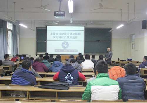 11月25日,校区学院常务委员会副主任蒋金泉教授在5号教学楼103教室特为采矿专业毕业生做了题为“上覆高位硬厚度关键层结构演化特征及致灾规律”报告会。