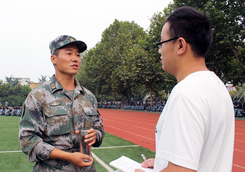 军训期间,我们有幸采访到了担任此次军训的总教官辛奇峰连长,采访中,辛连长对同学们在军训过程中的表现表示满意。他说,我们连队曾多次执行大学生的入学军训任务,军训的教官都是部队骨干,他们都是高素质、经验丰富的教官,在来之前都事先经过了严格的培训和学习。辛连长勉励同学们在以后的学习和生活中能够继续保持这种吃苦耐劳的精神,加强体育锻炼,为实现我的中国梦而继续努力奋斗。