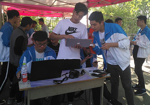 4月19日上午,东校区春季运动会在体育场开幕,机电系新闻中心对赛事情况进行实时报道。