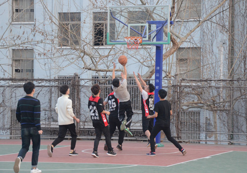 3月13日,机电系学生会内部篮球赛在篮球场持续进行。