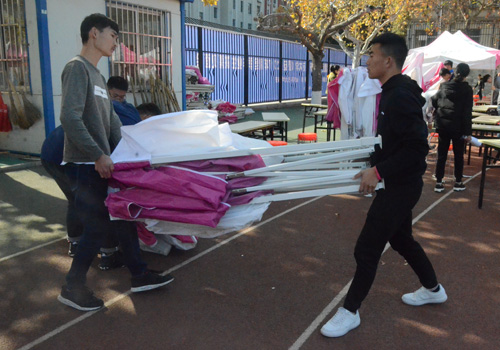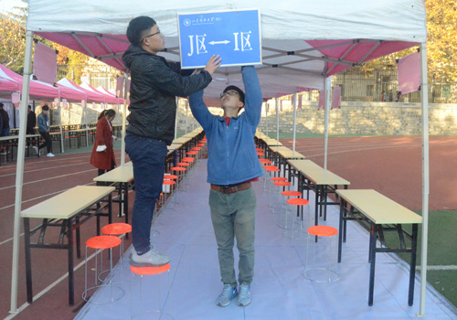机电系宿建会成员提前到招聘会现场完成会前准备工作。