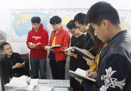 系团总支周立志老师与机电系学生会主席团讨论招聘会事宜。
