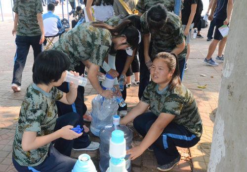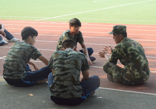“我来帮你拿着杯子”,绿装红颜因点滴小事显得更加动人。 欢笑声为军训增光彩,兄弟情是最宝贵的财富。(文/图:王小萌 郑璐)
