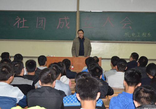会上,谢清勇首先指出:“在中国机器人及自动化装备业,机器人行业被公认为是潜力最大的市场。我系也十分重视学生在研发机器人方面的培养,机器人协会的创立有着非常重要的意义。以后也将成立更多有助于学习专业知识的社团,要把社团推出学校、推向社会,以学生社团带动学生走上创新创业的道路。” 随后,宋庆军阐述了机器人协会的成立意义并就带来的一款机器人为同学们作了介绍。他强调,加入机器人协会有机会深入学习一些机械工程、电子工程等学科的专业知识,同时机器人协会的优秀成员也会参与到老师的相关课题和项目中,为以后走向社会奠定坚实基础。之后,机器人协会会长彭鹏宣读了协会的日常活动,并对指导老师在技术和资源上的大力支持表示了感谢。