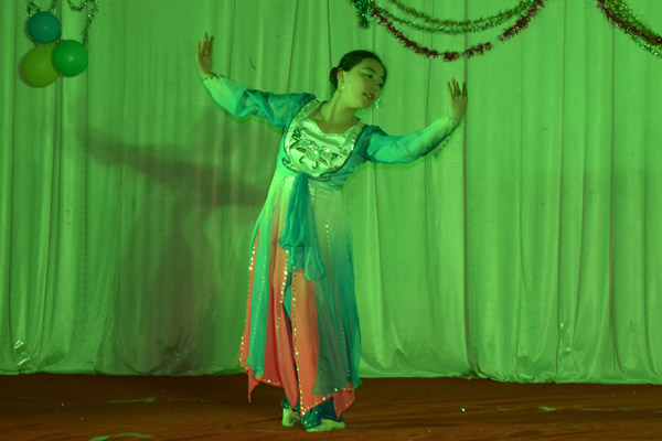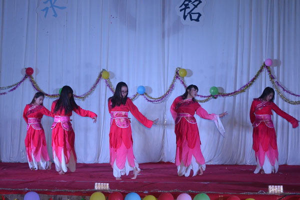 此次晚会的节目内容形式多样、丰富多彩。开场舞《惊鸿舞》一出场,就吸引了在场观众的眼球,惊艳全场;双截棍表演更是气势恢宏;小品《宿舍惊魂夜》以恢谐生动的表演引发了在场观众的阵阵笑声;笛子《儿女情》独奏深受观众喜爱,让同学们经受了一次艺术的洗礼;泰山医学院的同学带来的民族舞《春江花月夜》与我校资土系的轮滑表演将整场晚会推向高潮。晚会中诸多节目受到了同学们的一致好评。掌声和欢呼声此起彼伏,台上台下形成了一片激情四溢的海洋。文艺晚会在悠扬的音乐声中落下帷幕。