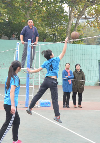 比赛场上气氛紧张热烈,场下欢呼喝彩不断,双方队员相互鼓励,奋力拼搏。在女子组的赛事中,机电系的队员们更是发挥出色,配合默契。在第一场比赛中,气氛异常紧张,比分交替上升,但很快资土系队员便出现了颓势,资土系连续发球失误,机电系以25:22的比分拿下了开门红。伴着场外阵阵的加油声,机电工程系的巾帼英雄们更是气势连涨,第二场比赛一开始,机电系的女生便连拿10分,资土系两度鼓舞士气试图挽回局势,最终机电系以25:16大比分击败资土。(文:王小满 图:刘文杰)