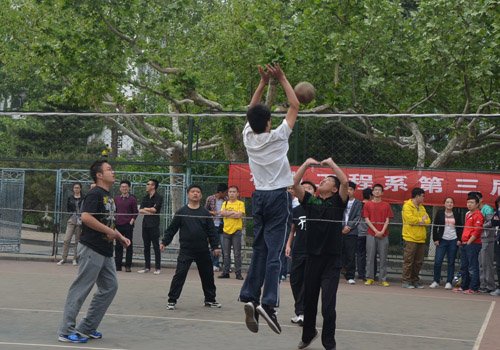 4月23日,机电工程系第三届师生排球赛在排球场拉开帷幕。机电系党总支副书记刘相明、团总支书记谢清勇、系团总支全体辅导员参加了比赛。