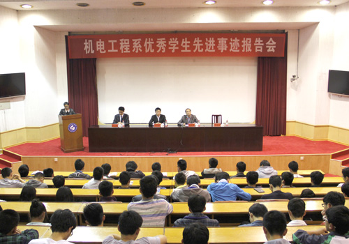 为进一步推进校区(学院)“三风建设”,加快机电系学风建设的步伐,机电系从“树榜样立学风”出发,深挖学生先进典型,充分发挥优秀学生的模范带头作用,促进我系学风建设。4月22日,机电工程系在4号楼报告厅召开优秀学生先进事迹报告会,会议由机电工程系团总支书记谢清勇主持。本次报告会由我系焦帅(任校区学生会副主席)、李若魁(班长,国家奖学金,山东省优秀毕业生)、徐海迪(团支书,山东省优秀毕业生)等同学组成的“优秀学生报告团”就大学生活的各方面与280名同学作了交流。