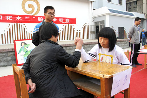 为了促进我校女生对体育的热爱,增强集体荣誉感。10月22日,由机电工程系团总支主办、系学生会承办的“校园花木兰”腕力争霸赛在文化广场成功举办。