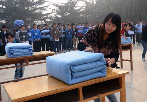 军被大赛展风采,叠军被大赛不仅检验了军训质量,提高了学生叠军被水平,对培养大学生求真务实,拼搏进取的精神起到了良好的推动作用。(文:简真如 王鹏)
