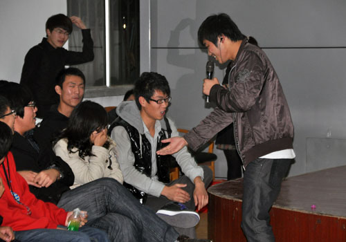 晚会开始,主席团深情合唱的一曲《朋友》,将全场的气氛推向高潮,舒缓的旋律在师兄师姐们的演唱中饱含情感,引起了同学们的强烈共鸣。系学生会主席吕东代表主席团发表讲话,他总结了学生会前期的工作,肯定了同学们工作中的辛勤付出,并向同学们对学生会工作的支持和奉献表示感谢,希望通过这次活动,各部同学增进彼此间的交流与了解,为今后工作的顺利开展奠定基础。