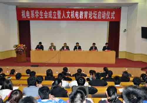 10月10日下午,机电工程系第六届学生会成立大会暨人文机电教育论坛启动仪式在4号楼报告厅举行。机电工程系党总支副书记、副主任刘相明,校督导组专家郭钦贤教授,系团总支书记谢清勇,系学生会秘书长周立志出席了大会。大会由谢清勇主持。