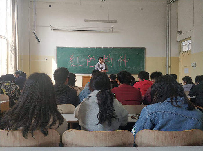 会上,曲迪通过文献和视频资料与大家一起重温杨靖宇、黄继光、狼牙山五壮士等民族英雄抗战故事和红军长征途中革命先烈克服重重困难、冲破艰难险阻的英雄事迹。通过照片和精彩的讲述,大家再一次感受到了现在幸福生活来之不易,感受到党的光辉历程、光辉传统和优良作风。曲迪强调我们要以纪念五四运动100周年,中华人民共和国成立70周年为契机,认真品读《红岩》、《红日》、《红军长征记》等红色经典,学习、渗透、领悟革命精神,在生活中加强思想观念,坚定信念,不怕困难不惧挑战;在学习中开拓进取、勇于创新,在中国共产党的旗帜指引下乘风破浪,披荆斩棘,为祖国的建设上下求索。通过此次班会,同学们认识到作为当代大学生应该传承和发扬革命精神,同时赋予它更多的精神内涵,以便于更有针对性的领会革命精神,真正做到重温红色记忆,传承革命精神,发扬爱国情怀。(图/文:卢士杰)