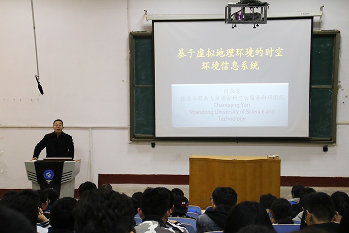 11月27日下午,信息系于1a107举办“基于虚拟地理环境的时空环境信息系统”报告。本次报告由信息工程系大数据与云服务团队负责人、硕士生导师、博士、副教授闫长青主讲,信息系主任助理杨晓东主持。