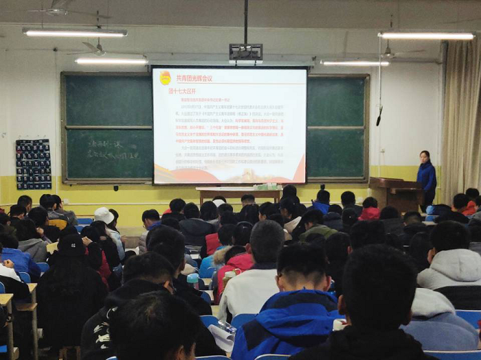 本次团课围绕“学习新团章,高举团旗跟党走”展开,会上,王浩滢说明本次团课的主题和意义,以共青团的历史为切入点讲述团的发展和辉煌的心路历程,并从团章的总则、团的组织制度、团的组织纪律、团徽团歌团旗等几个方面对新团章进行了充分的阐述。课上,王浩滢放映有关团的视频资料,同学们认真观看,领悟视频中所展现的团的思想,王浩滢就视频和ppt中的相关内容对现场的同学进行提问,着重强调作为一名共青团的义务和担当,使同学们明确新时代的共青团员应该争做学习刻苦、工作勤奋、品德崇高的优秀青年,应认真履行社会主义核心价值观的要求,应深刻体会团的相关知识。会上,王浩滢带领电科、计科18级全体学生进行了宣誓,此次宣讲圆满结束。