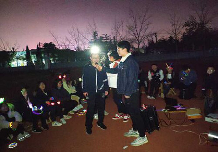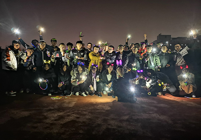 此次活动由网络工程18级3班团支书郭霖以及团支委林峻屹、孙杰策划,全体学生参与,活动通过游戏与运动相结合的方式,让同学们感受到健康的欢乐与趣味。与此同时,同学们一起参与了游戏,达到了宣传健康阳光运动的效果。夜跑正式开始前,同学们用荧光棒、印有网络三班标志的独特荧光手环和荧光头饰等,点亮了整个体育场。随着游戏开始的一声令下,同学们手挽着手,有说有笑的开始了夜跑。站在远处观望,似乎看到一颗颗星光在奔跑着,点缀出了青春的华章。随后在由班长周熙涵主持班级建设活动,在一首开场曲的映衬下,三班的同学依次进行了击鼓传花、数字炸弹等三轮游戏。活动中身怀才艺的同学带来了首首动听的歌曲,欢乐的游戏表演使同学们的笑声响彻整个操场,为深邃的夜增添了一份绚烂。最后,该次活动以团支书郭霖的讲话结束。郭霖总结说:“通过参与这次活动,同学们体验到了健康奔跑的快乐,明白了体育锻炼对于我们意义;同时在这个深秋的夜晚,也感受到了来自网络工程18-3班大家庭的温暖。”