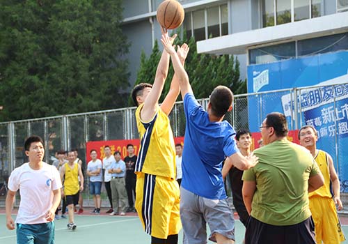 此次比赛在2017届毕业生与信息系教师之间展开。比赛前夕,同学、老师前来进行赛前训练,场面热烈欢快。师生双方各做好准备活动。双方本着“师生情谊第一,场上比分第二”的原则,比赛在激烈、友好的氛围中开始。参赛师生热情洋溢,以饱满的精神状态展现了各自不凡的实力,赛场上既有激烈的对抗、紧张的角逐,更有不断的欢笑声和轻松愉快的交流声。比赛过程中精彩的抢断、默契的传球、精准的投篮更是将比赛推向高潮。最后,通过精彩的角逐,比赛以75:75相同的分数圆满结束,并且所有参赛队员合影留念。