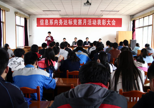 4月21日,信息工程系于办公楼301召开宿舍内务达标竞赛月活动表彰大会,校区(学院)保卫处副处长牛进社,宿管中心副主任宋明永,系党总支副书记朱景星出席此次大会。大会由系团总支书记蒲蓬勃主持。