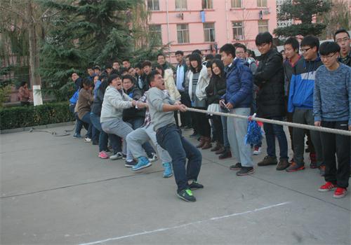 比赛现场,热闹非凡。比赛双方各就各位后,一声哨响,裁判员手一挥,双方队员憋足了劲向后拉,同学们在一旁为本班加油鼓劲,无论观众,还是选手都沉浸在这热闹有趣的比赛之中。一方队员齐喊口号,集中力量,松弛有度,一点点将对方拉到了自家阵营中,队员们欢呼雀跃,高兴不已。经过一番激烈的比拼之后,计算机13-1获得一等奖、道德风尚奖,网络13-1获得二等奖、公平参与奖,计算机13-3获得三等奖,计算机13-2获得公平竞争奖。