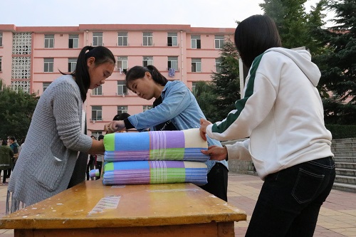 10月23日下午四点半,由经管系团总支主办、学生会生活部和卫生部联合承办的叠军被大赛在西校园礼堂前举行。此次比赛邀请经管系学生会副主席刘亚君、宿管部部长刘帅等担任评委,经管系2017级新生参加。