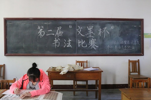 比赛限时一小时,分为硬笔书法和软笔书法。现场提供纸张,书写字体要求以正楷、行楷为主,书写内容积极向上,古今诗词,名家格言等均可。比赛伊始,选手们都沉心静气,认真书写自己的作品。最后,选手们均在规定时间内高质量完成作品,评选出的获奖作品将在经管系宣传栏展出。
