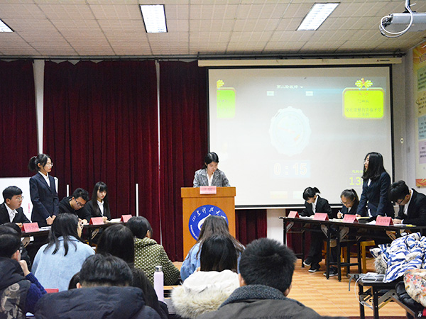11月16日下午,由校区(学院)团委、学生会主办,文法系团总支、学生会承办的第十一届“激情飞扬杯”辩论赛初赛在文秘情景实验室顺利举办。各系学生会代表及文法系优秀辩手郑毅夫担任评委,各系优秀辩论队伍参赛,各班学生代表观看。
