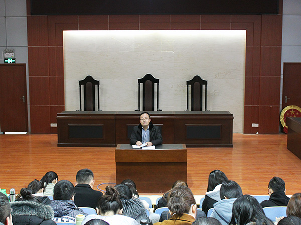 近日,文法系在模拟法庭召开学生信息安全工作会议,布置信息安全工作。会议由文法系团总支书记郭涛林主持。
